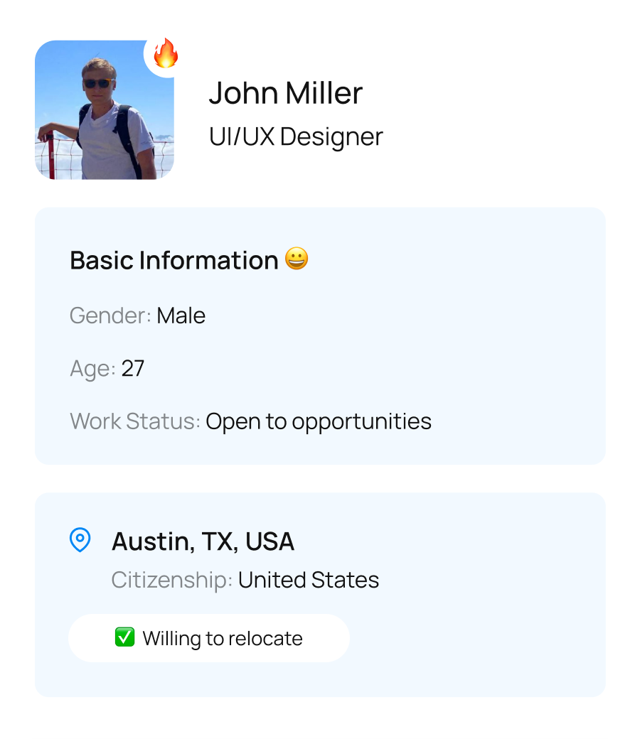 Quick contact details for reaching the candidate